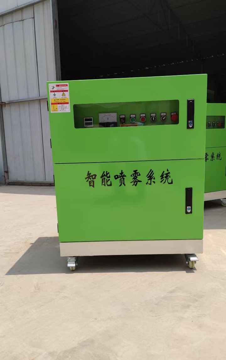 手推式除塵噴霧機是液體通過潛水液泵輸出,經(jīng)大流道藥液輸送系統(tǒng)輸送至高旋轉(zhuǎn)的霧化轉(zhuǎn)盤,在高速離心力的作用下,液體在霧化轉(zhuǎn)盤的邊緣被霧化成細(xì)小霧滴,霧滴由轉(zhuǎn)盤沿徑向拋出,并由風(fēng)機把霧滴吹送至前方。